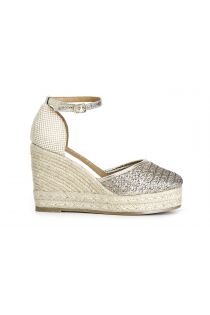 Sandalias de rafia con tira en el tobillo y cuña de esparto