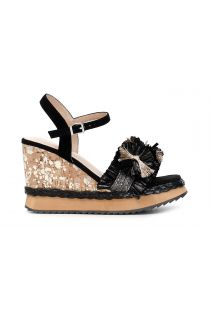 Sandalias de rafia deshilachada en cuña de varios materiales.
