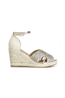 sandalias de tela cerradas por detrás y cuña de esparto light gold