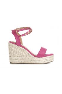 sandalias de tela con tachuelas sobre cuña de esparto hot pink