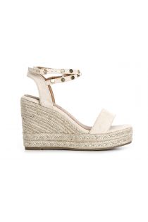 sandalias de tela con tachuelas sobre cuña de esparto sand