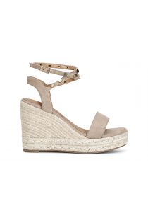 sandalias de tela con tachuelas sobre cuña de esparto tortora