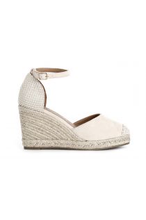 sandalias de tela y cuña de esparto sand