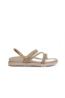 Sandalias asimétricas con cinco tiras cubiertas de pedrería plantilla de piel sobre plantilla confortable.