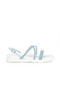 Sandalias asimétricas de cuatro tiras con pedrería plantilla de piel sobre plantilla confortable.
