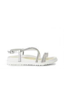 Sandalias asimétricas de tiras con pedrería plantilla de piel sobre plantilla confortable.