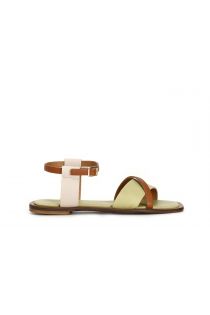 Sandalias de piel multicolor con bandas asimétricas y tira en el tobillo.