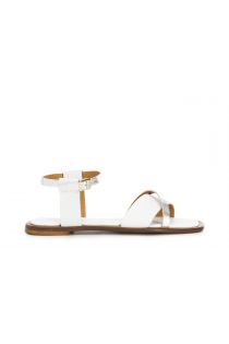 Sandalias de piel multicolor con bandas asimétricas y tira en el tobillo.