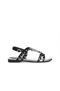 sandalias efecto piel craquelada con tachuelas y tira en la entrepierna black