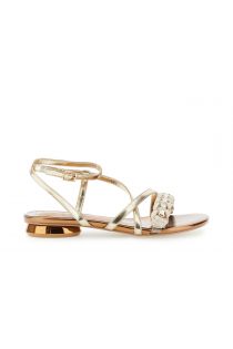 sandalias efecto piel laminada con tira al tobillo y pedrería gold