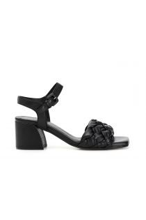 Sandalias modelo Gilda con punta cuadrada y cinta entrelazada de piel. Tacón medio.