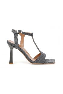 Sandalias en T con punta cuadrada, tacón 115 mm, plantilla y forro de piel.