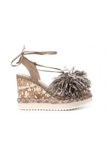 sandalias estilo a la esclava con lazo de rafia deshilachada