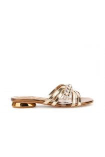 sandalias estilo slipper en efecto piel laminada con detalles de pedrería gold
