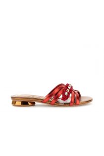 sandalias estilo slipper en efecto piel laminada con detalles de pedrería red