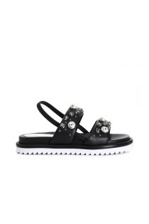 Sandalias fraile con pedrería y tira elástica en la parte trasera. la cuña es de h. 3.5 cm. modelo ideal para darle un toque easy a cada look.