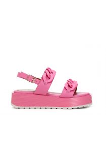 Sandalias fraile en nueva suela personalizadas cuadrada y plantilla fuera de patrón. Maxi cadenas del mismo color efecto barra de color.