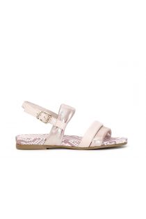 Sandalias modelo fraile de dos materiales piel y laminado con cinta. Cómodo lecho del pie con impresión animalier.