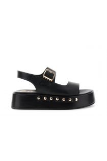 sandalias fraile en piel napa con tachuelas en la cuña black
