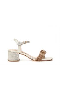 Sandalias Gilda con cinta delante de micropedrería en tacón medio.