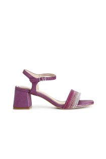 sandalias gilda efecto laminado con bandas de pedrería por delante hot pink