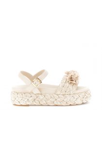 sandalias gilda en cuña con banda de rafia y flores beige