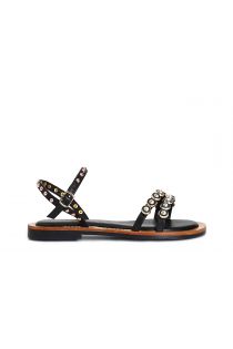 Sandalias modelo gilda en napa con tachuelas y pedrería. el forro y la plantilla son de piel. el tacón es alto h. 1.5 cm. zapato cómodo incluso tras varias horas de uso y perfecto para combinar con múltiples looks.