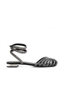 Sandalias jaula de piel con refuerzo trasero y pedrería mignon. tobillera en espiral.