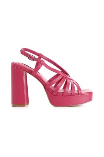 sandalias jaula de piel con plataforma hot pink