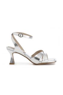 Sandalias metalizadas con cruce y lazo en el tobillo. tacón h. 70 mm