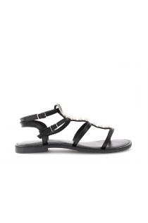 sandalias planas de piel con hebilla joya black