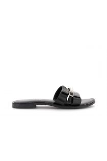 sandalias planas de piel con hebilla joya black