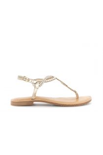 sandalias planas tipo chanclas de piel con bordado trenzado gold