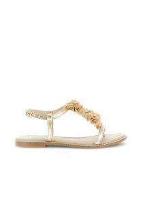 sandalias tipo chanclas de piel laminada con accesorio de rafia light gold