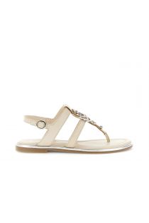 sandalias tipo chanclas de piel laminada con accesorio joya beige