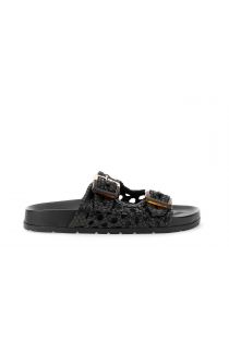 sandalias tipo pantuflas de piel trenzada con hebillas y plantilla moldeada black
