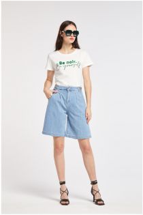 Shorts vaqueros de vestibilidad regular confeccionados en un tejido confort. placas personalizadas en el cinturón