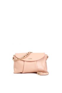 Bolso de hombro con solapa blanda y pliegue central. logotipo de metal. doble bandolera de cadena bicolor o del mismo material que el bolso. cierre con imán.