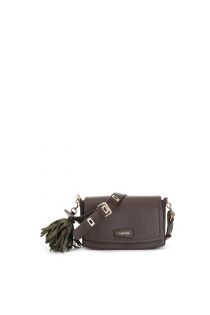solapa con colgante grande de flor de tela, asa con hebilla normal dark brown