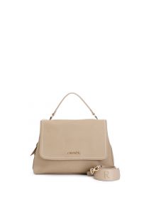 Solapa de estructura suave con charms y bandolera extraíble con logo y remaches. bolso dividido en varios compartimentos: un tabique cerrado con cremallera y un bolsillo interior con cremallera. cierre magnético.