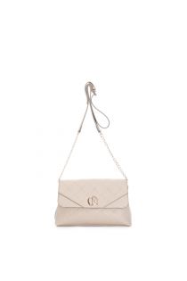 solapa con logo estampado en toda la prenda y bandolera de cadena tortora