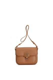 Bolso de hombro con solapa en material de efecto texturizado. logotipo aplicado en efecto cuero con pespuntes a mano y bordes en los laterales. bolsillo delantero. cierre con imán.
