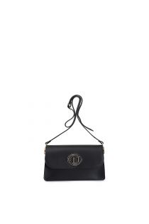 Bolso de hombro de piel lisa con solapa. logotipo ovalado esmaltado tono sobre tono. cierre con imán. bolso con bandolera extraíble.