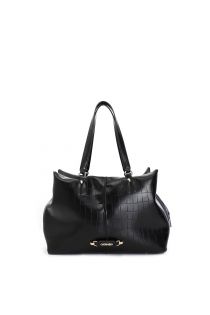 Bolso shopping en material sintético con estampado de cocodrilo. aplicación de etiquetas con letras metálicas. cierre de cremallera. bolsillo interior con cremallera.