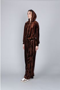 Sudadera con capucha y cremallera frontal en terciopelo suave y degradado con un acabado luminoso. Ideal para looks casual-chic. Corte regular. La modelo mide 173 cm y lleva una talla S.