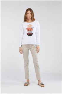 Una sudadera básica y atemporal de cuello redondo enriquecida con un estampado de colores degradados en la parte delantera. Una lluvia de microperlas transparentes superpuestas al estampado proporcionan luz.