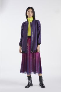 Sudadera larga tipo bomber confeccionada en tejido elástico. El pespunte de dos agujas es con hilo en contraste y le da a la prenda un toque deportivo. El artículo está forrado y, por esta razón, se vuelve muy versátil para usarlo también como prenda exterior de entretiempo