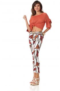 CAMISETA EN VISCOSA LUREX CON MANGAS CON UN CORTE DE TRIÁNGULO BORDADO DE OLANES