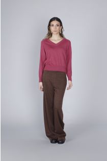 Suéter cálido y acogedor con cuello en V en mezcla de cachemira. Perfecto para un look casual y refinado. Corte regular, ideal para conjuntos versátiles y cómodos. La modelo mide 173 cm y lleva una talla S.