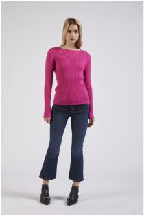 Jersey de cuello redondo y manga larga confeccionado en hilo de viscosa con elaboración acanalada. placas personalizadas en los hombros.